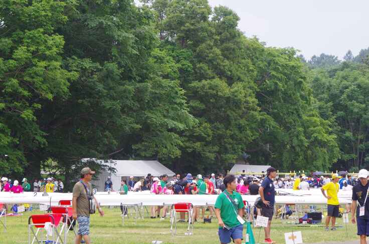 大きな樹々と青々とした芝生しかなかった会場にテントがたち、艇がならぶと、網走湖も大会のムードが高まってきました。