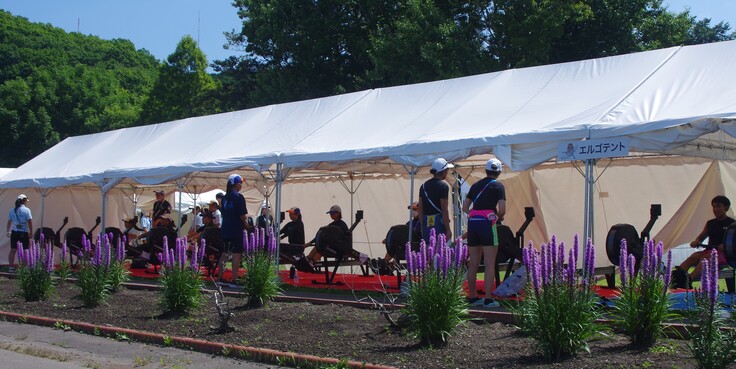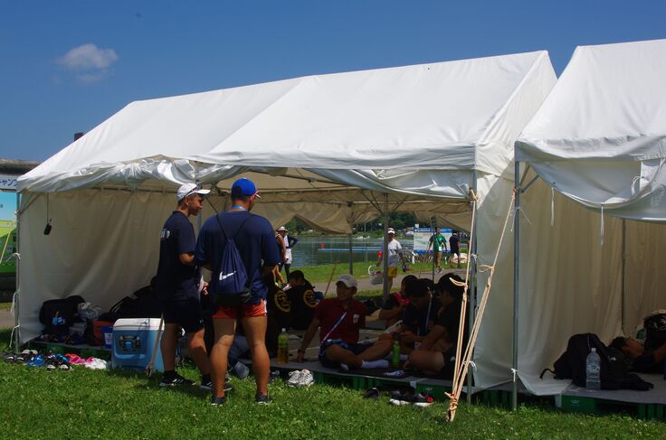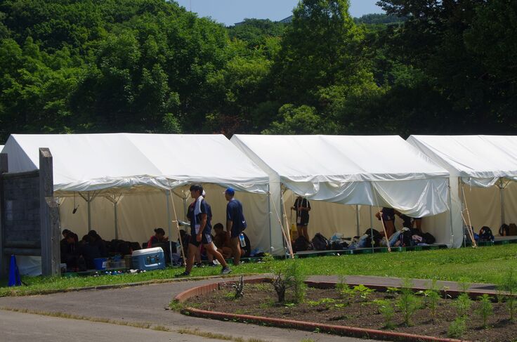 広々とした選手テント。