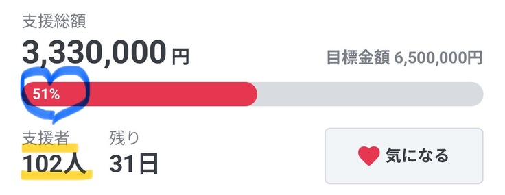達成率は50%に到達!このタイミングで、ご支援者さまは100名を突破いたしました!