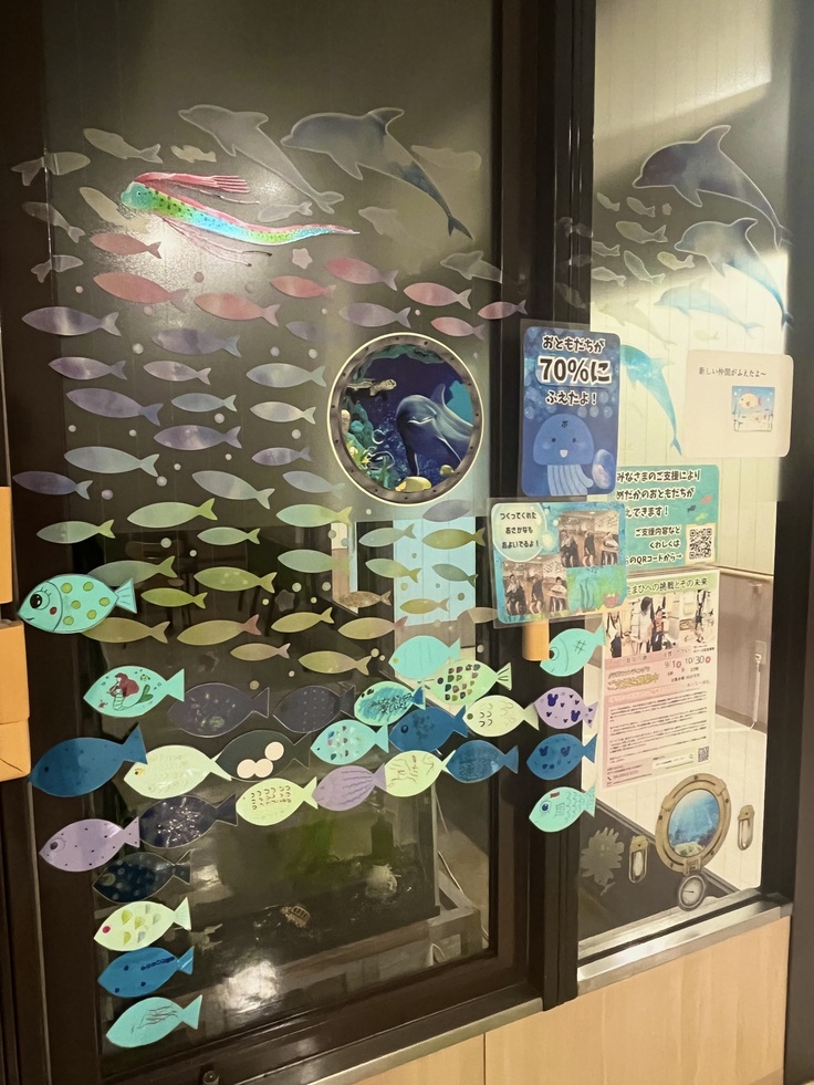 達成率が50%となった時にリュウグウノツカイが登場したメダカブースには、先週から今週にかけ、イルカたちも仲間に入ってくれています >* ))))><