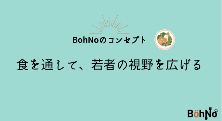 食を通して: 食に対して、様々な興味分野と情熱を持つBohNoメンバーが多岐に渡って活動でき、それによって若者へワクワクを与えられるように❤️🔥