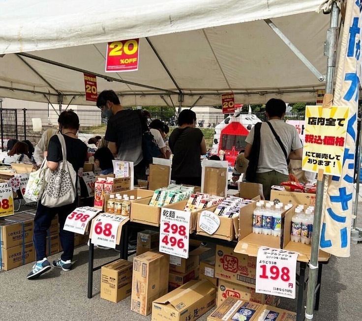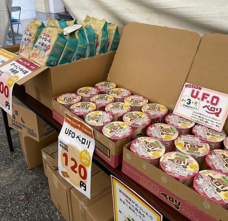 それぞれを少し詳しく説明すると、賞味期限が近かったり、過ぎてしまってお店では販売できなくなった商品を日本もったいない食品センター様から仕入れて、イベントで販売しています。