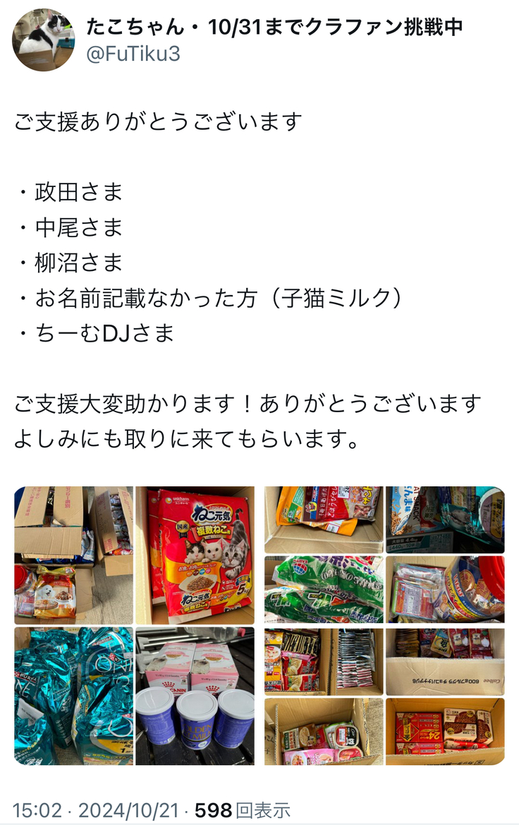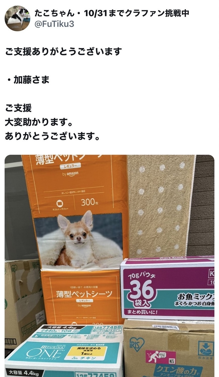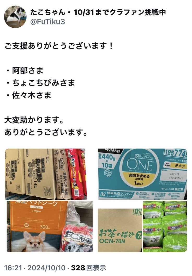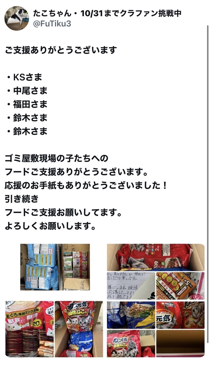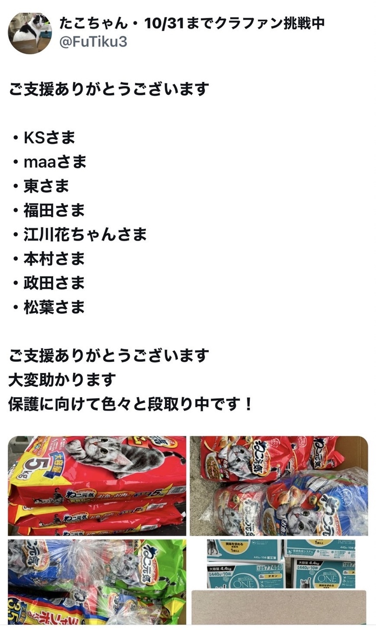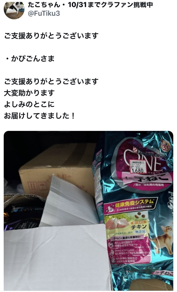 保護した子猫達へのミルクやフードを募集したところ、