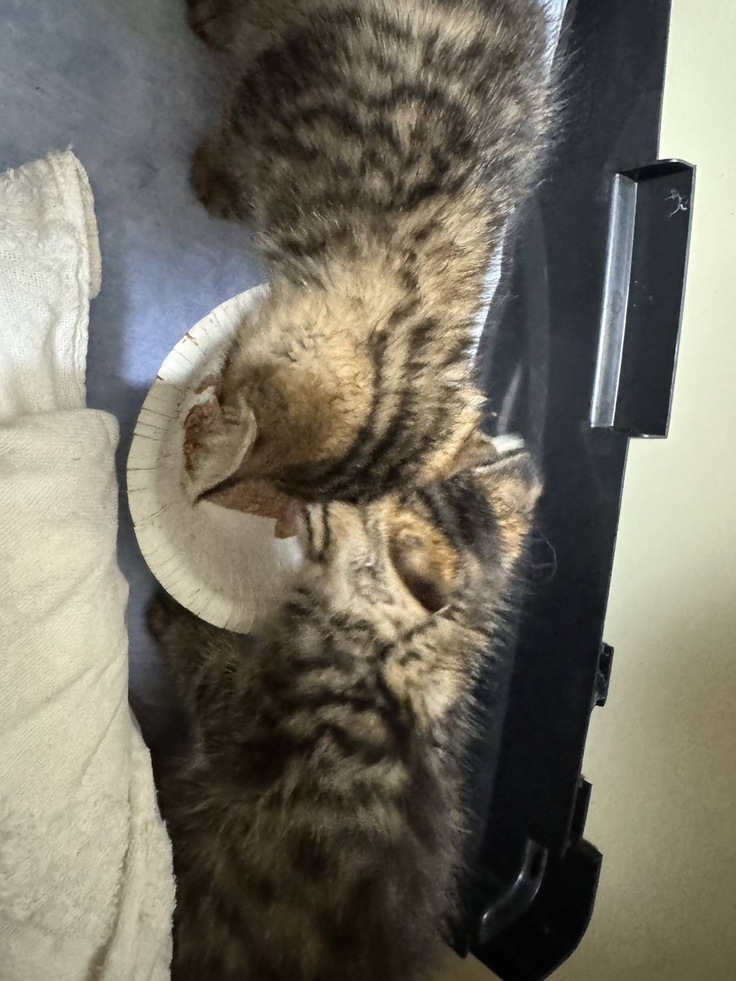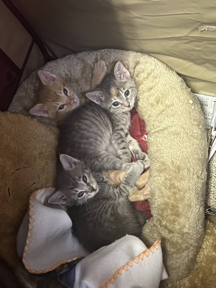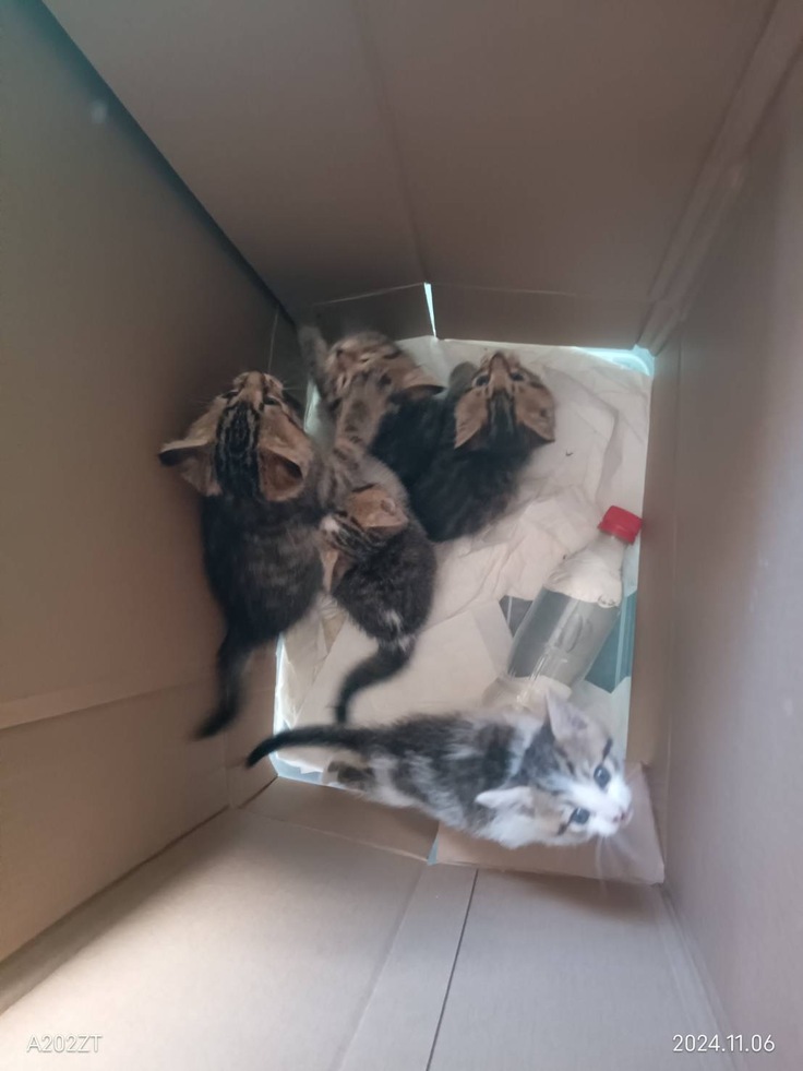 段ボールから仔猫が出てきているのを見た人がいるとの連絡だった。