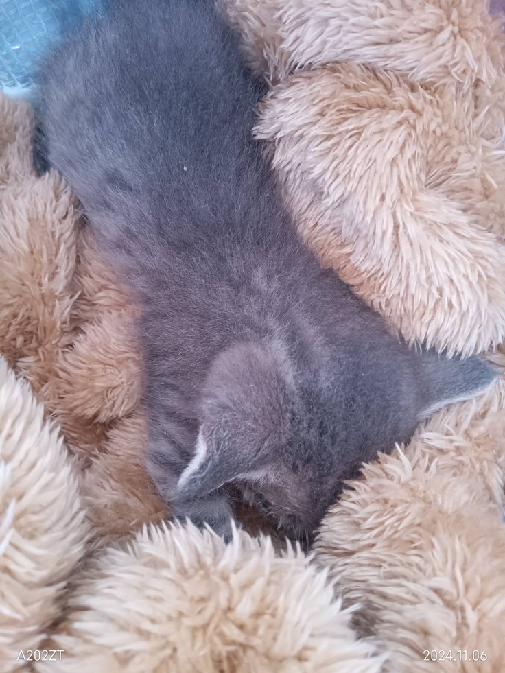 濡れていて大急ぎで連れ帰り、保温とご飯。