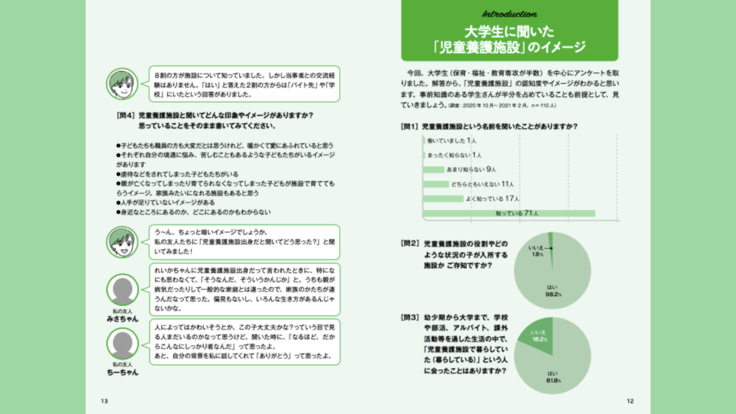 どうしても本を出すとなると著者の経験に基づく内容が多くなってしまうと思うのですが、「児童養護施設はそこで暮らしている子だけが主役じゃない」と思い、施設にかかわるたくさんの人の声をこの本に詰め込みました。