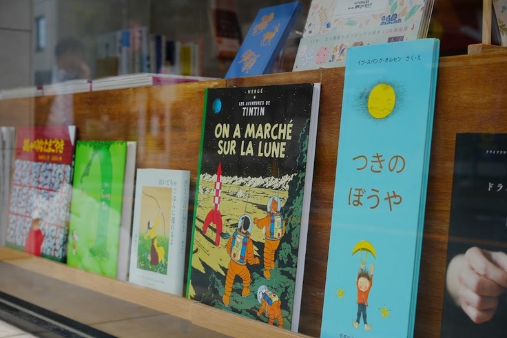 書店有給休暇に、入ってすぐ右手の原画棚ですが、開店の一ヶ月は絵本等を置いていました。