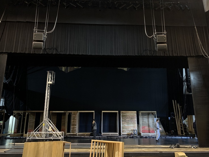 新作ミュージカル「鬼の鎮魂歌(レクイエム)」の舞台装置の搬入・設営が今日から始まりました。