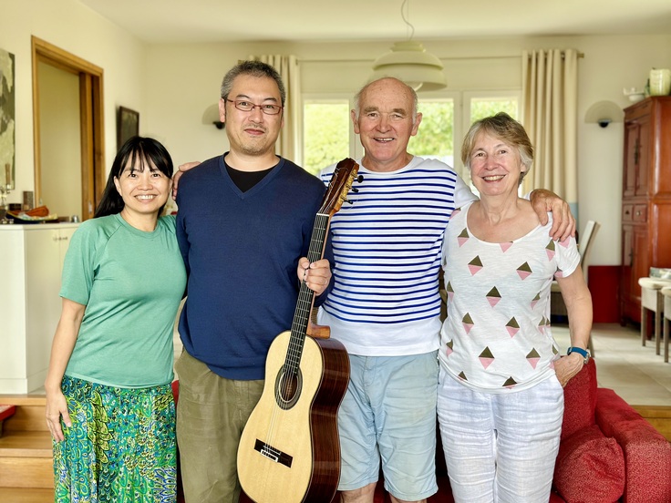 2,3日中にギフト(リターン)の1つであるステファニー・ジョーンズつくば公演の日程と場所をご報告できる予定です。驚くほど、とても良い会場を見つけることができました。正式な契約書の取り交わしが済み次第またご報告いたします。今後ともどうぞよろしくお願いいたします。写真は帰国直前、マゼさん御夫婦と関場夫婦の記念写真です。私が持っているものが今回製作した、ブーシェさんの道具で作ったブーシェ・コピーです。8月半ばとはいえ、薄手のセーターが心地よい、快適な気候でした。