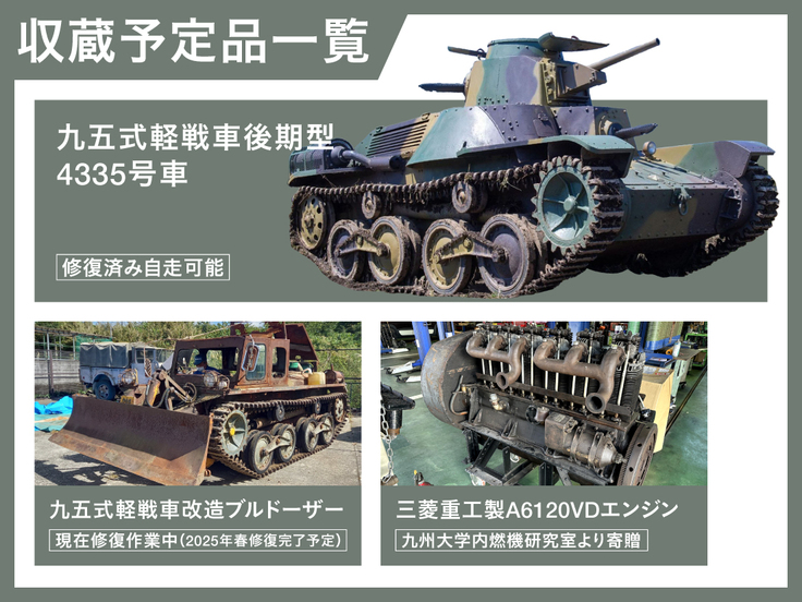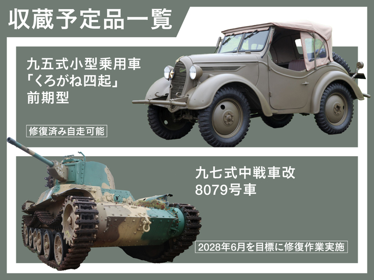 2025年2月20日には、日本に現存しない九七式中戦車改(新砲塔チハ)のアメリカからの里帰り費用を募るクラウドファンディングを達成し、同年3月18日に帰国を果たしました。これより2028年6月を完成目標に、レストアに入っていきます。