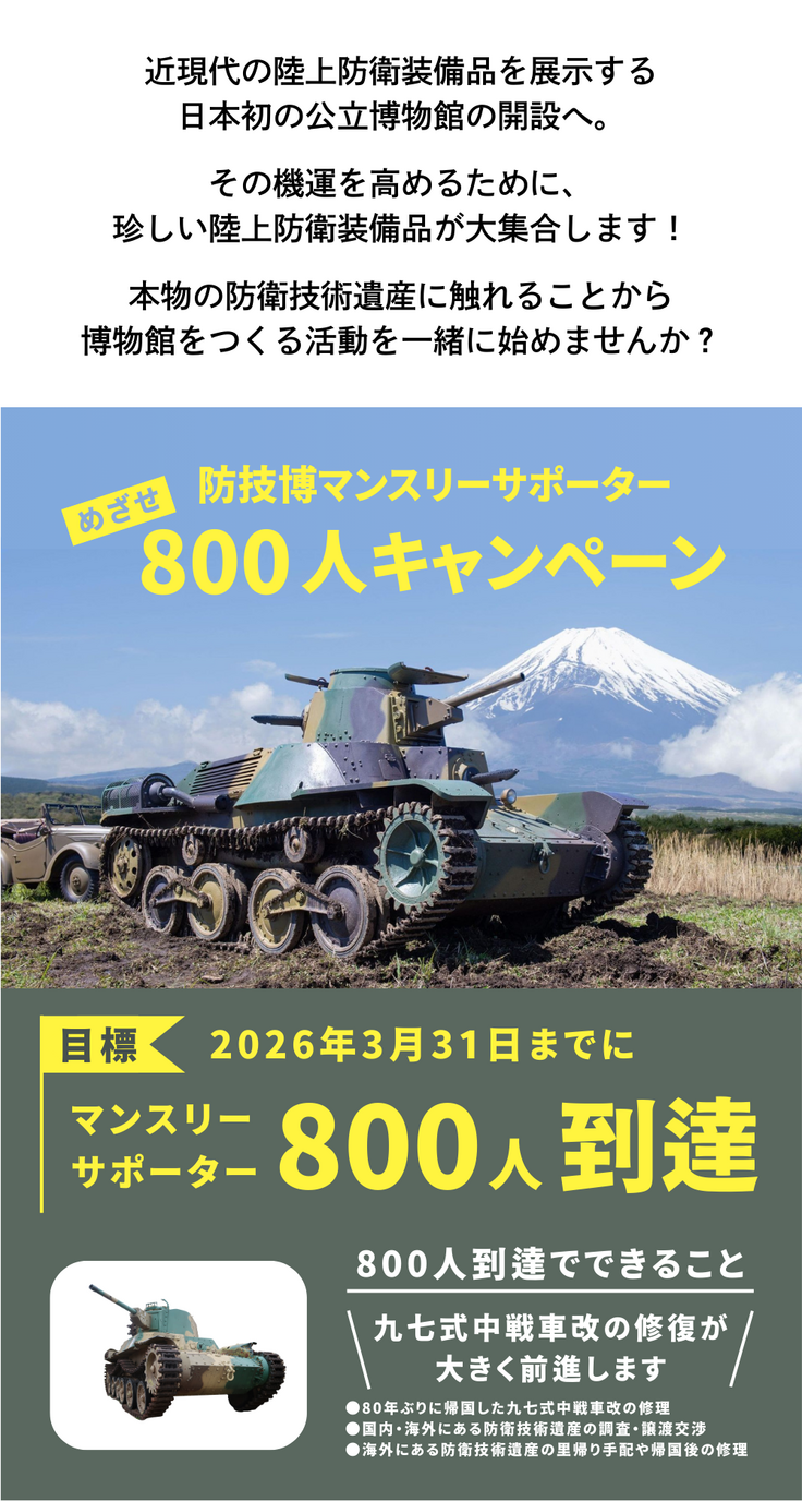 「防衛技術博物館を創る会」のマンスリーサポーターを募集します!