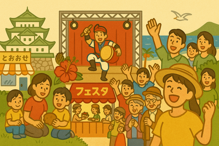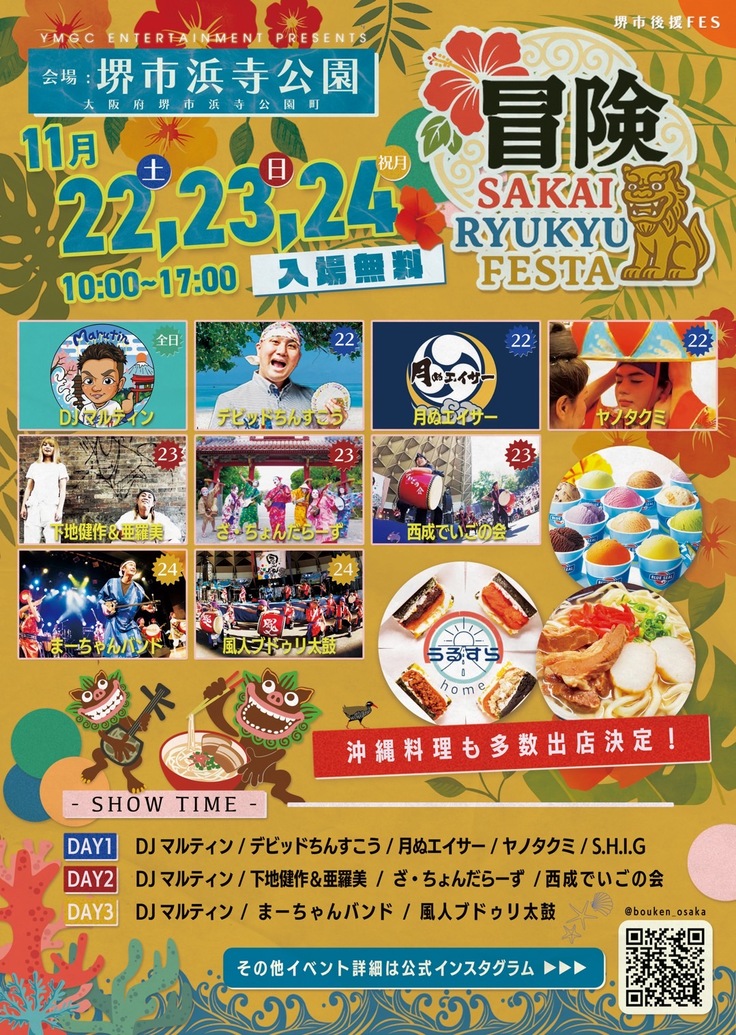 会場は活気と笑顔に包まれ、子どもから大人まで誰もが楽しめるプログラムが盛りだくさん。沖縄の太陽のように明るく元気なステージ、会場全体を揺らすリズム、そして心を熱くする瞬間が待っています。堺にいながらまるで南国にトリップしたような非日常体験を、ぜひご家族やお友達と一緒に味わい尽くしてください!