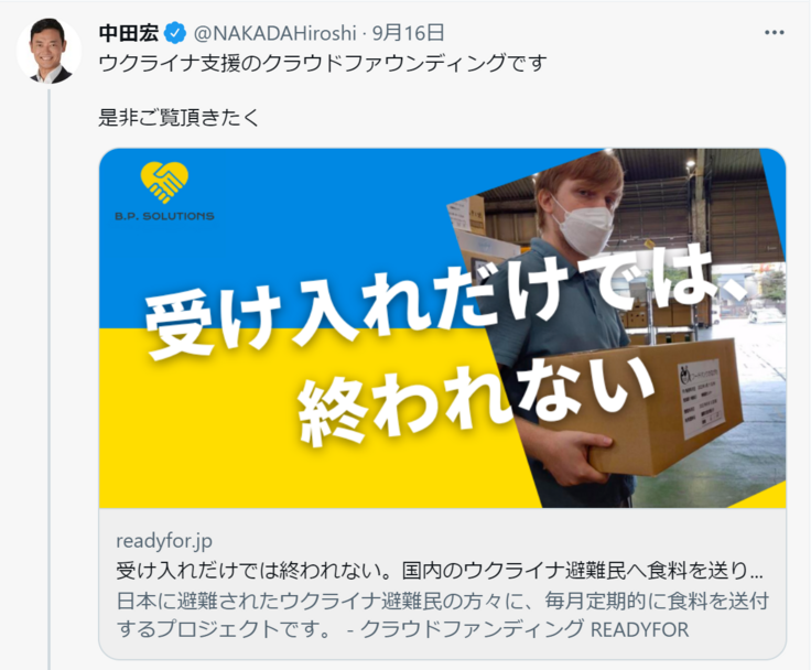 — 中田宏 (@NAKADAHiroshi) September 16, 2022