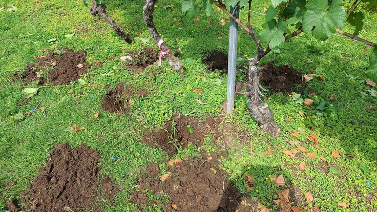 最近、ブドウ畑の片隅でスコップを手に何やら“怪しい実験”をしているメンバーが現れはじめました。