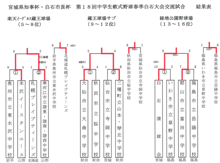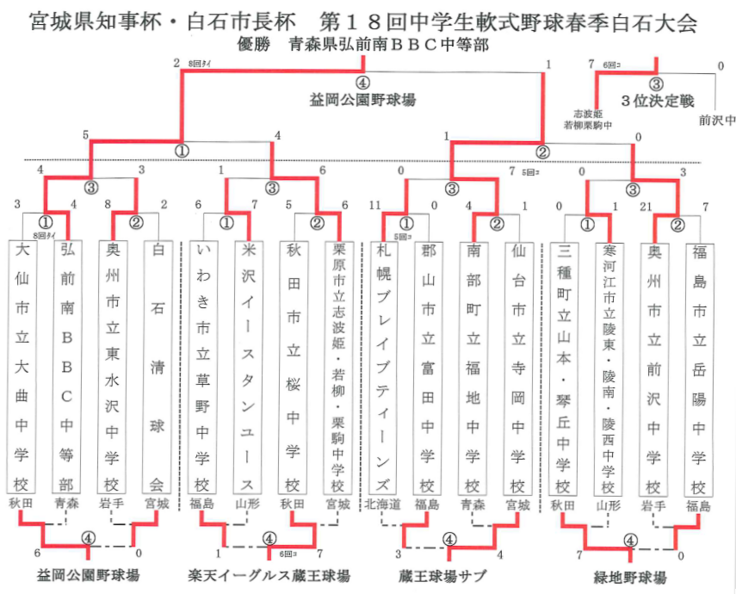 3月29日・3月30日宮城県白石市で開催された【宮城県知事杯 第18回中学生軟式野球春季白石大会】において計4試合を行い、選手・監督コーチ陣・保護者を含め約60名は、3月30日に無事北海道の地へ帰って参りました。ひとえに、皆様方の応援があったからに他なりません。