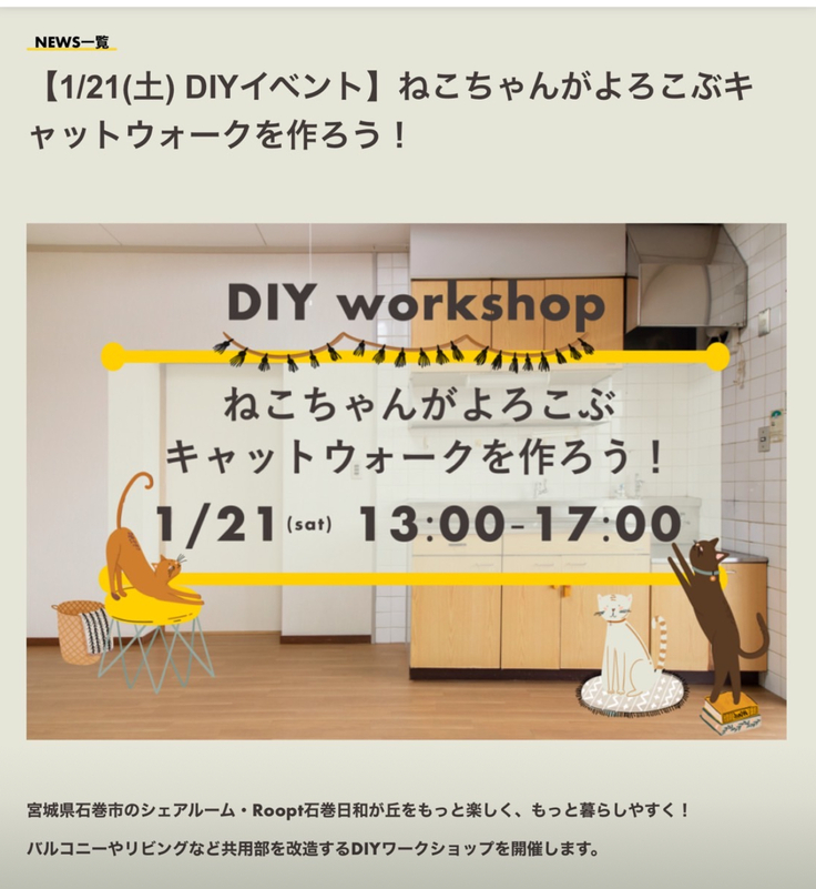 子どもたちが家の猫ちゃんをかわいがる様子を見ると、犬も猫も大好きですので、空き家をリフォームするのと一緒に猫ちゃんの居場所も作りたいと思っています。 そこで今日は全国的に有名な『巻組』さんが主催するワークショップに参加してまいりました加 借家でも壁を傷つけずにできるキャットウォークです。