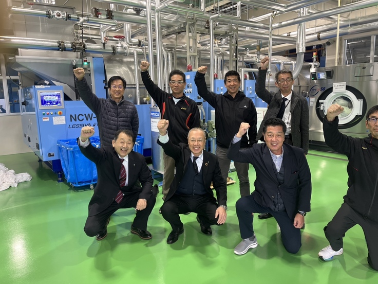 今回の写真は、済生会熊本福祉センター所長、各事業所の管理者による達成感に満ちた表情のガッツポーズです。