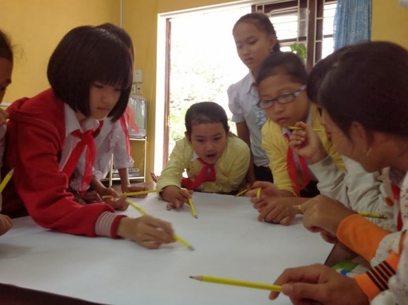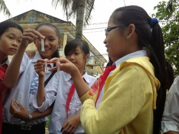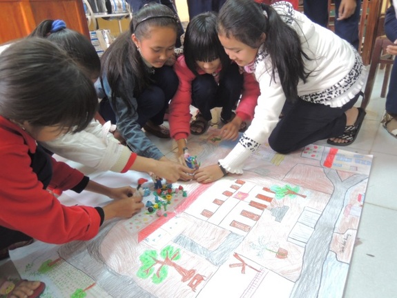 2013年11月より、本プロジェクトの対象地域ヴィンミー村にあるラムモンクアン中学校で環境教育を実施しています。