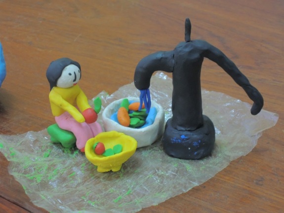 ・前回リストアップした「生活の中での水の使い方」の中から1つの場面を選んで、クレイアニメ作り。