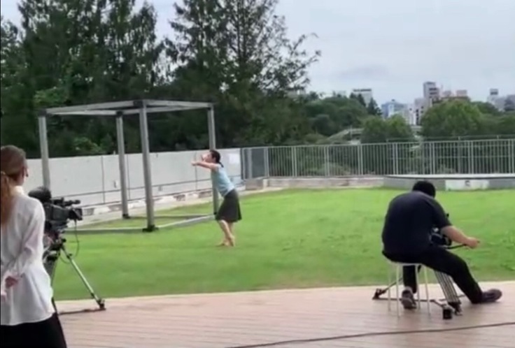10月4日のリアルタイム配信当日の密集低減のために行った事前収録。天候にも恵まれ、さわやかな空気の中での収録となりました。