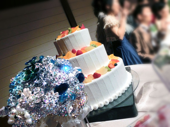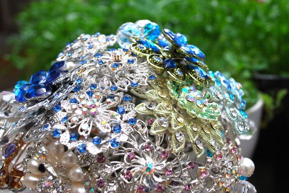 ブローチブーケとは、その名の通りブローチを用いて作製したブーケのことで、当ページのトップに掲載しているようにとても美しいブーケです。