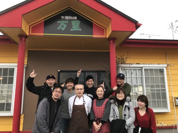 次に、メンバーの一人、SSWの門松良祐の案内で宮城県亘理郡亘理町へ移動しました。ここではご夫婦で経営される、中華料理店「万里」さんでお話を伺いました。