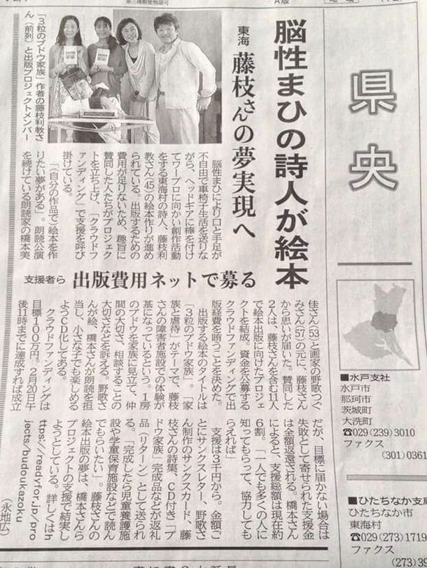 本日付茨城新聞で、藤枝さんの紹介記事が掲載されました(16面県央版)
