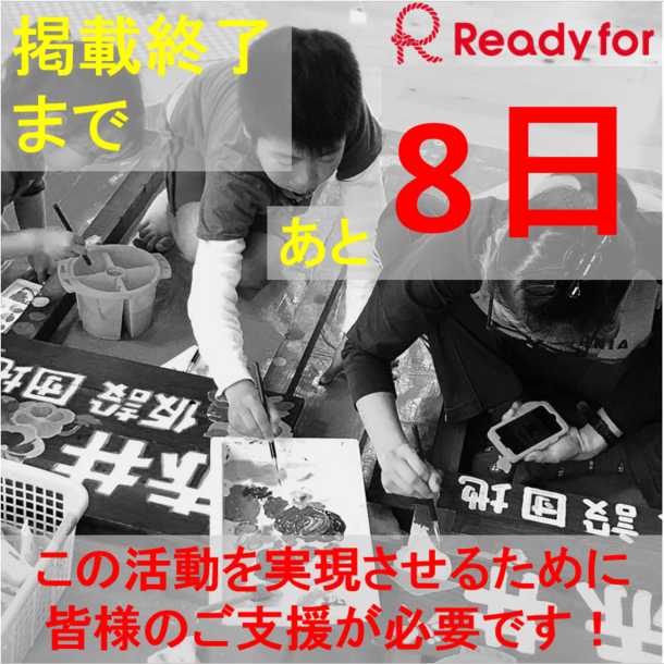 クラウドファンディングの掲載終了まで残すところあと8日となりました。