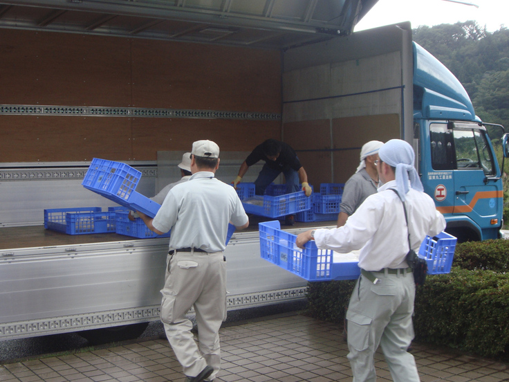 また、奈良市場冷蔵株式会社は物流のネットワークも当然もっておられます。被災地から冷凍保管の要請を受け、被災地の住所とおおよその量を奈良市場冷蔵株式会社に連絡すると、奈良市場冷蔵株式会社ではトラックを手配して奈良まで搬送していただけることになりました。