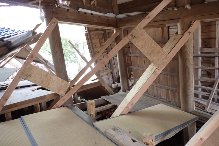 前述した支保工などによって、一定の安全は保たれているものの、この状態でもし大きな揺れが来たら…と考えると、少しドキドキしてしまう現場もあります。