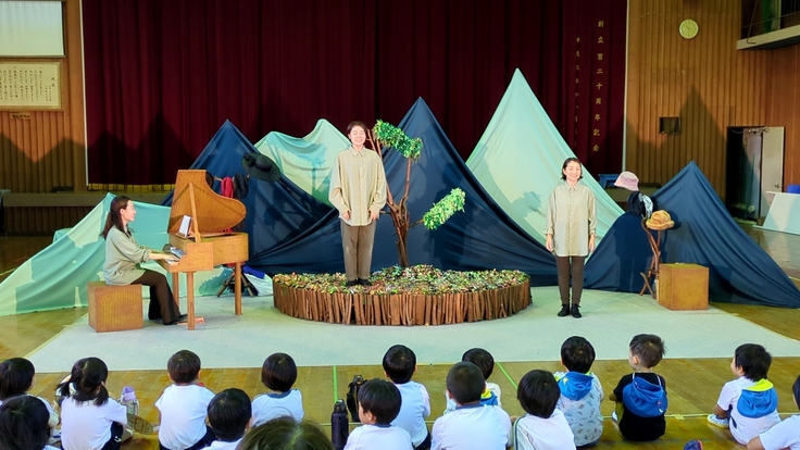今年度のクラウドファンディングによる小規模小学校支援事業9校目は、全校児童20名の垂水市立新城小学校で福岡の劇団さんぽの舞台劇「おおかみくんのパン」の鑑賞会でした。