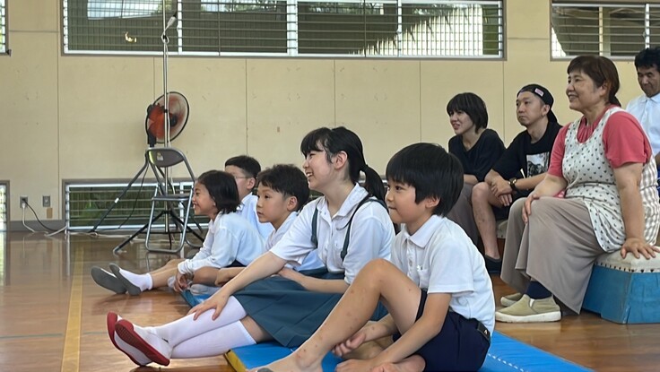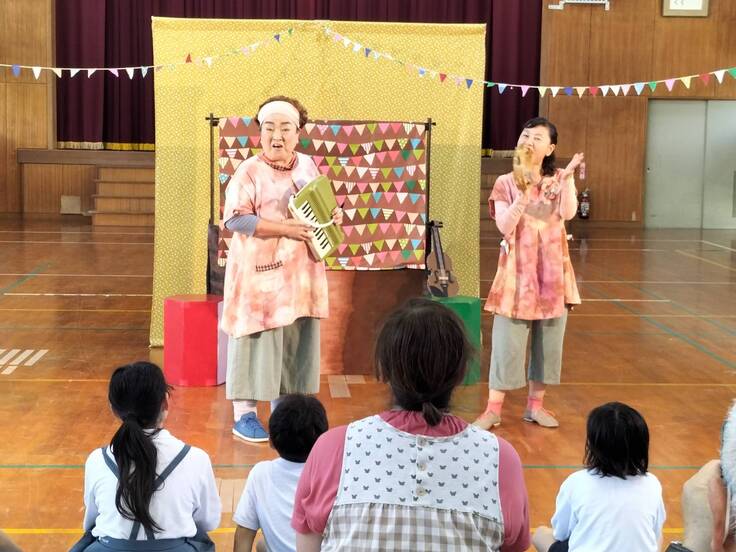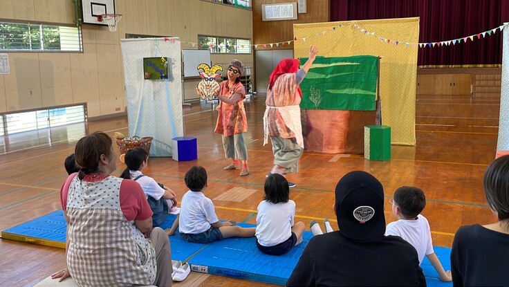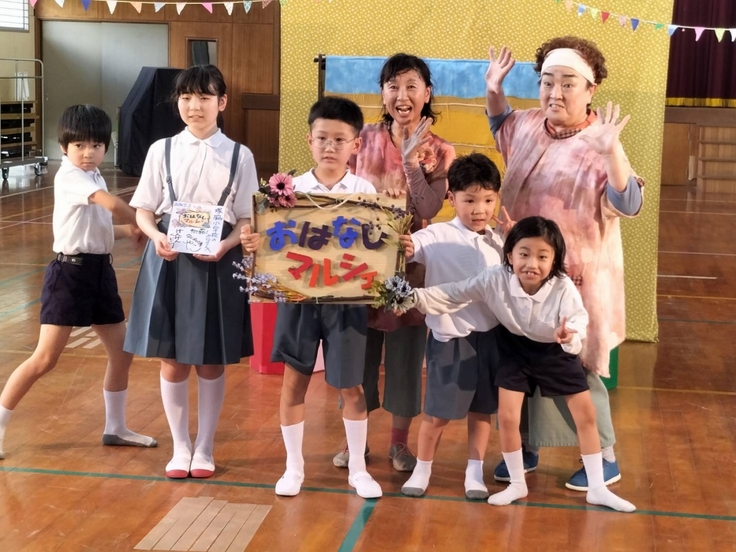 7月3日は小規模小学校支援事業の9校目、全校児童6人の霧島市立塚脇小学校でなにぬの屋の舞台劇「おはなしマルシェがやってきた!」の公演でした。