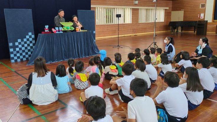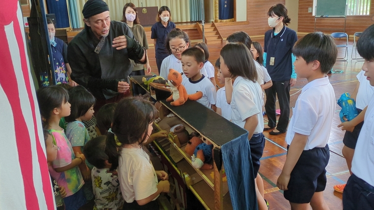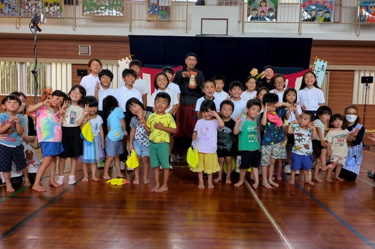 7月4日は種子島の西之表市立安納小学校での支援事業で、京都の人形劇団京芸による「まんてんげきじょう」を実施しました。