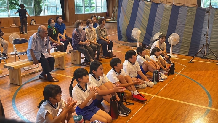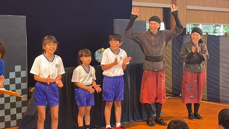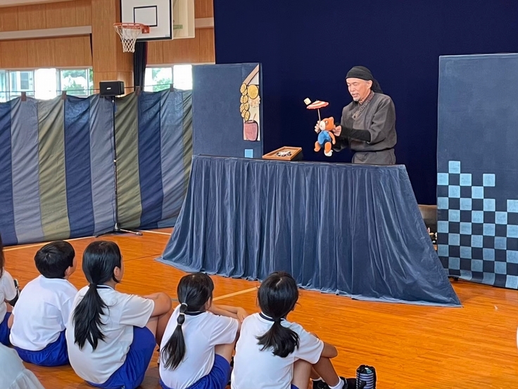 7月9日(火)は支援事業がもう1校、錦江町立大原小学校で人形劇団京芸の「まんてんげきじょう」の公演がありました。
