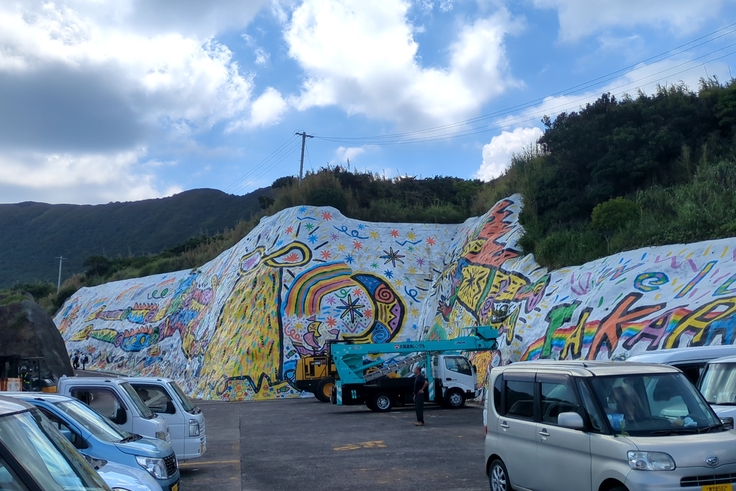 鹿児島を出港してから12時間30分。島に着くと2年前に書かれたという壁画が出迎えてくれます。