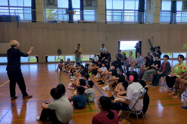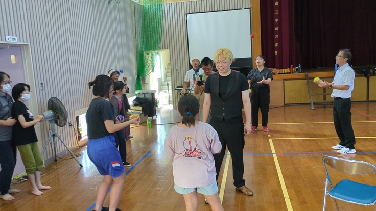 7月3日(水)は十島村の宝島にある「十島村立宝島学園」でJACKプロジェクトのK@ITOさんいよるパフォーマンスショーとジャグリングワークショップを実施してきました。