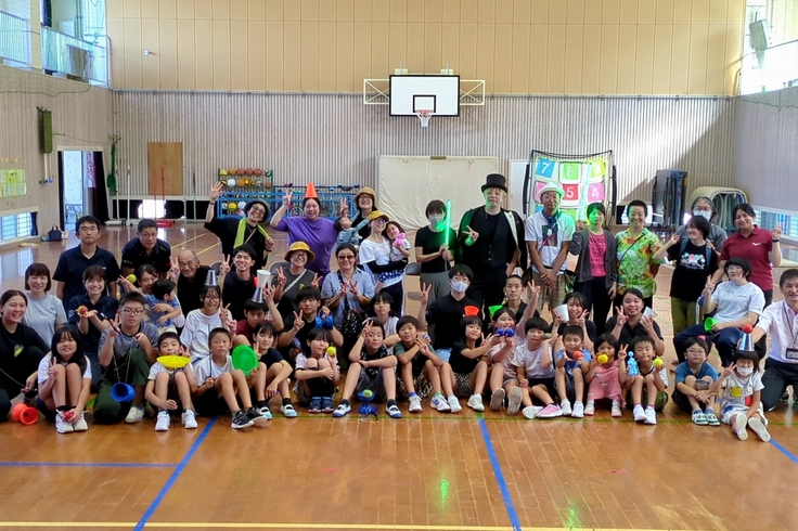 ショーの後のジャグリング体験も地域の方も一緒に参加されました。