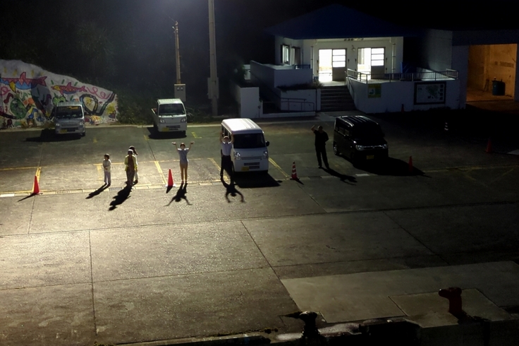 全体で59名、島民の半数近くがこの体育館に集まりました。