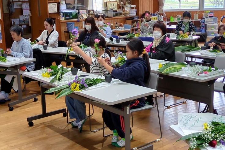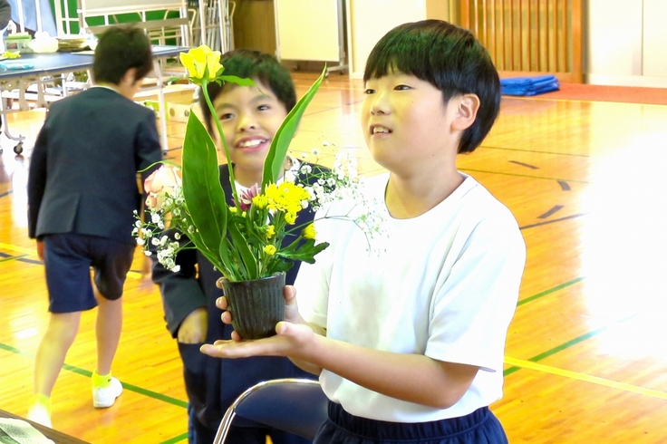 志布志市立潤ケ野小、南九州市立清水小学校で「いけばな体験」が実施されました!