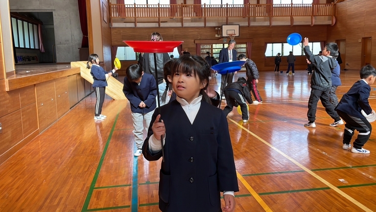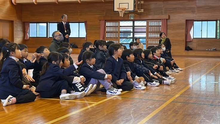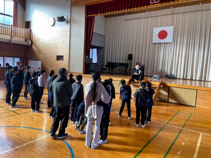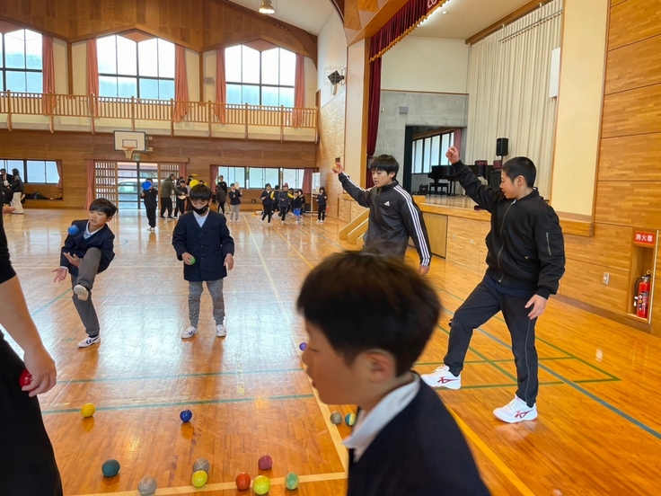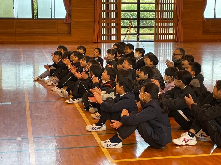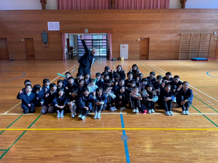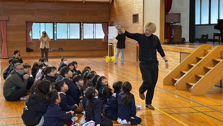 12月14日の第二土曜日、全校児童43名の曽於市立月野小学校でJACKプロジェクトのK@ITOさんによるパフォーマンスショーとジャグリング体験がありました。