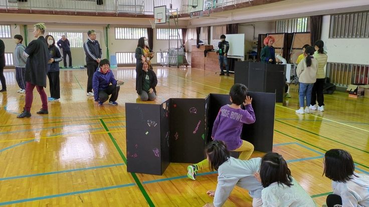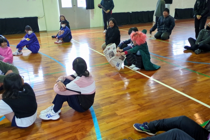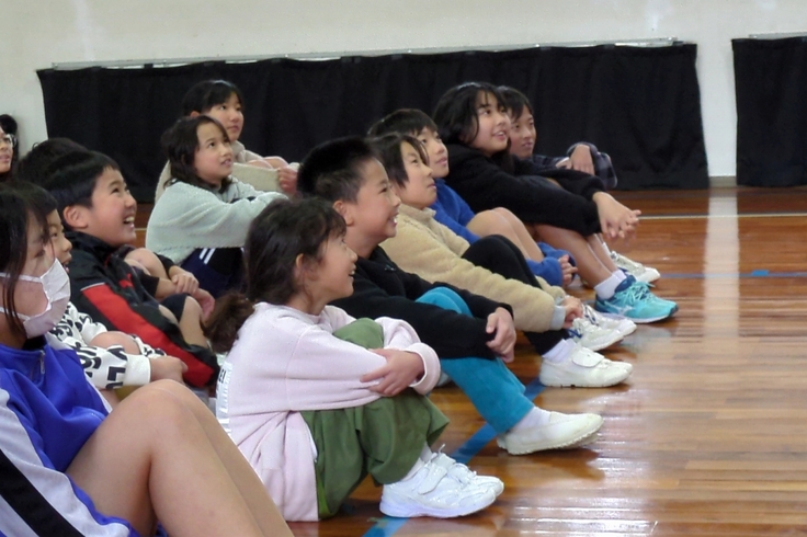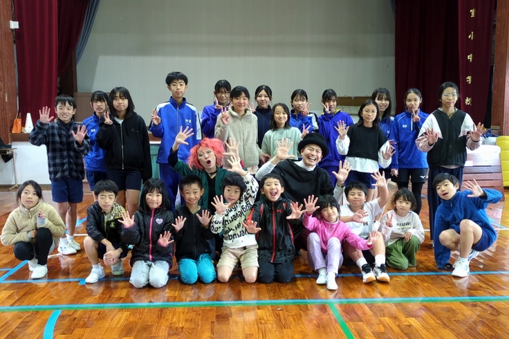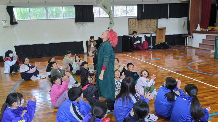 2月6日(木)、7日(金)の二日間、奄美大島の宇検村にある二つの小中学校、名柄小中学校と阿室小中学校で、ラストラーダカンパニーのクラウンChan'gさんとクラウンLONTOさんによるパントマイム体験を実施いたしました。
