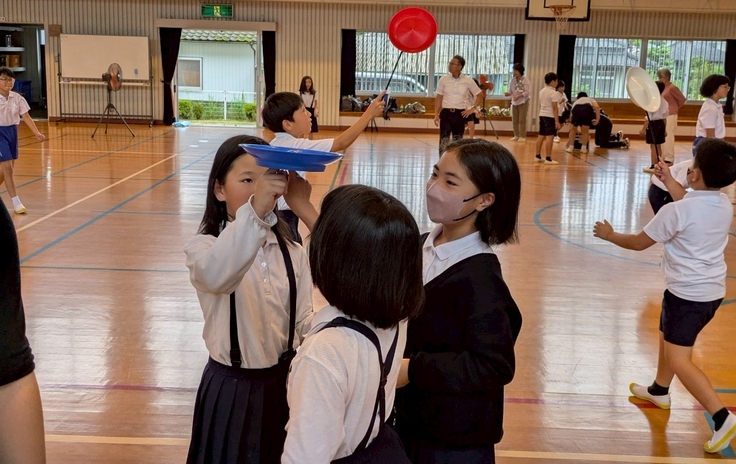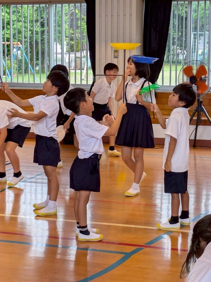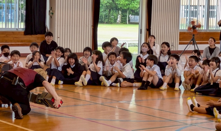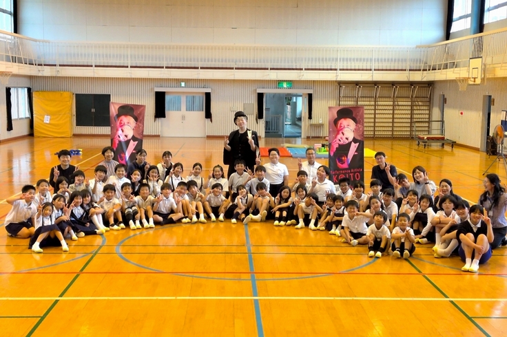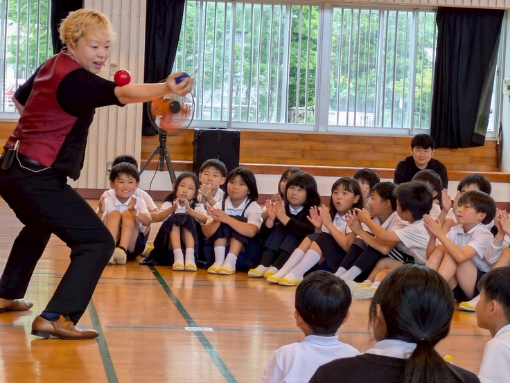 6月10日(火)は今年度支援事業3校目、伊佐市立本城小学校でJACKプロジェクトのK@ITOさんによるパフォーマンスショーとジャグリングワークショップが開催されました。