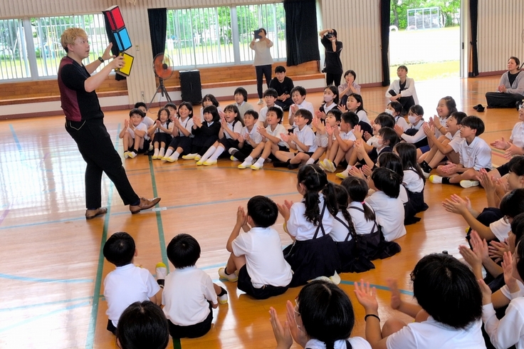 「子どもたちはみんなとても楽しみにしているんですけど、とても引っ込み思案な子どもたちなので盛り上がるか・・・」と先生が少し心配していましたが、子どもたちは導入のマジックからK@ITOさんに惹きつけられ、歓声が上がっていました。