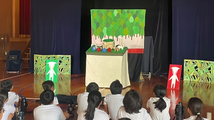 7月2日(水)は善光寺度25名の薩摩川内市立八幡小学校で、パペットシアターゆめみトランクの「やぎのおはなし/かぐやひめ」が上演されました。