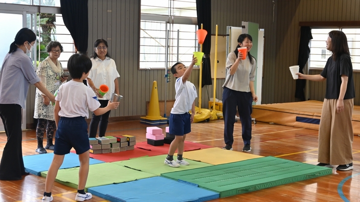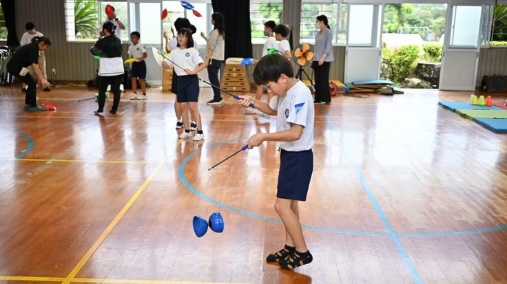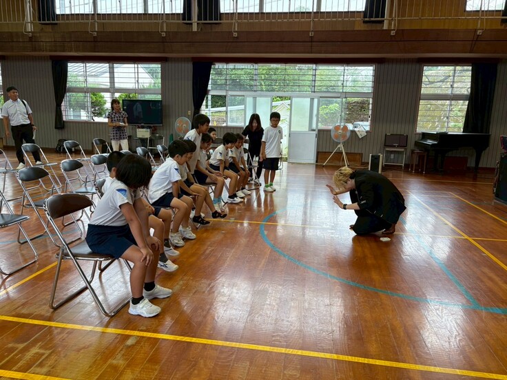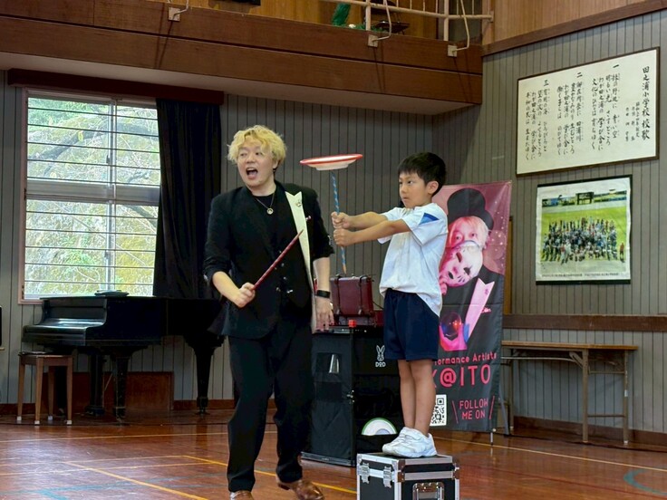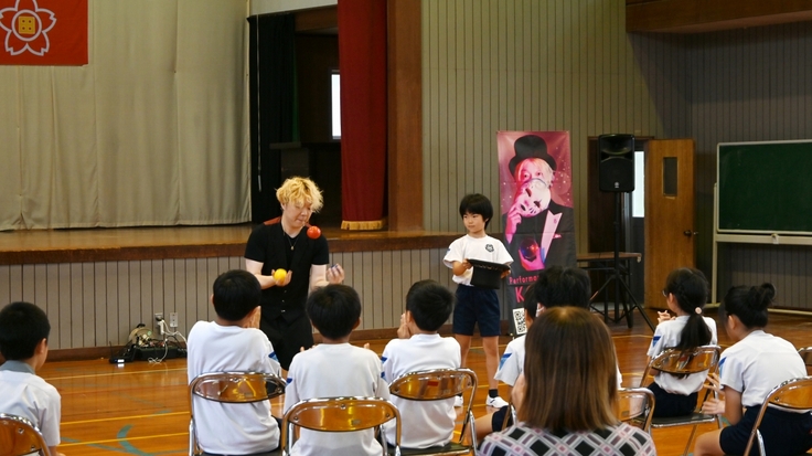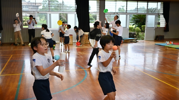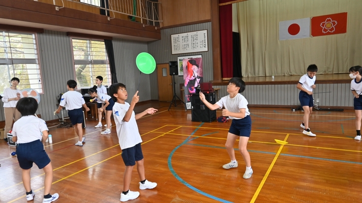 9月24日(水)全校児童18名の志布志市立田之浦小学校でJACKプロジェクトの K@ITOさんによるパフォーマンスショー鑑賞とジャグリングワークショップがありました。