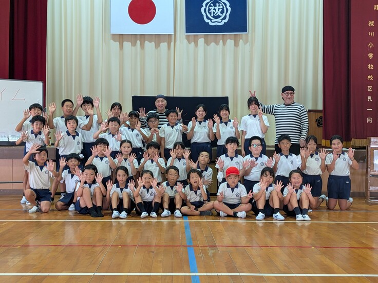 支援事業10校目、鹿屋市立祓川小学校でパントマイム体験のご報告です!
