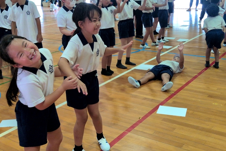 体験になると、ちょっと恥ずかしそうでしたが、先生方もいっしょに参加してくださったので、体育館をいっぱいに使って動いていました。