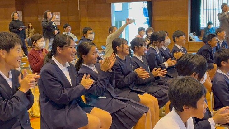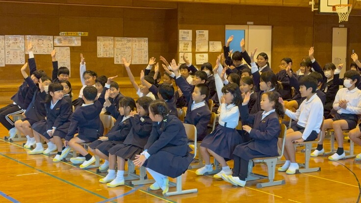 学校訪問週間ということもあり、全校児童児童47人と一緒に保護者や地域の方々も鑑賞されました。