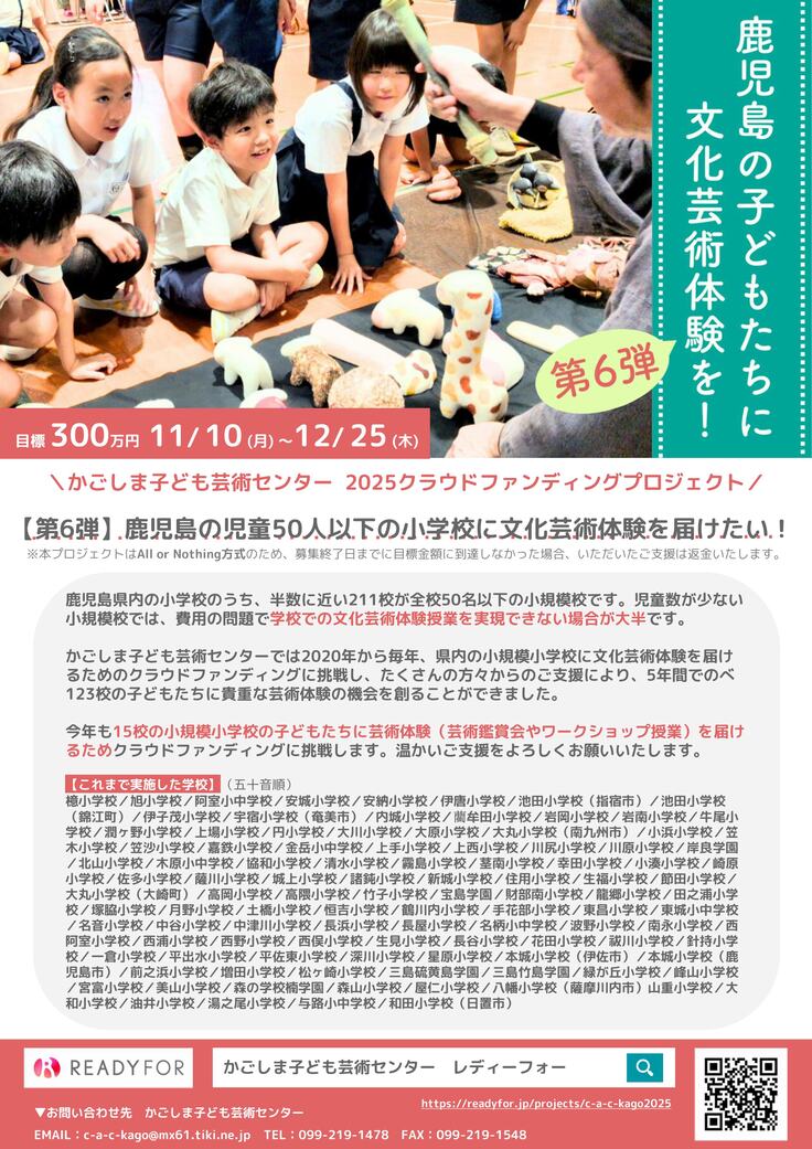 【第6弾】鹿児島の児童50人以下の小学校に文化芸術体験を届けたい!