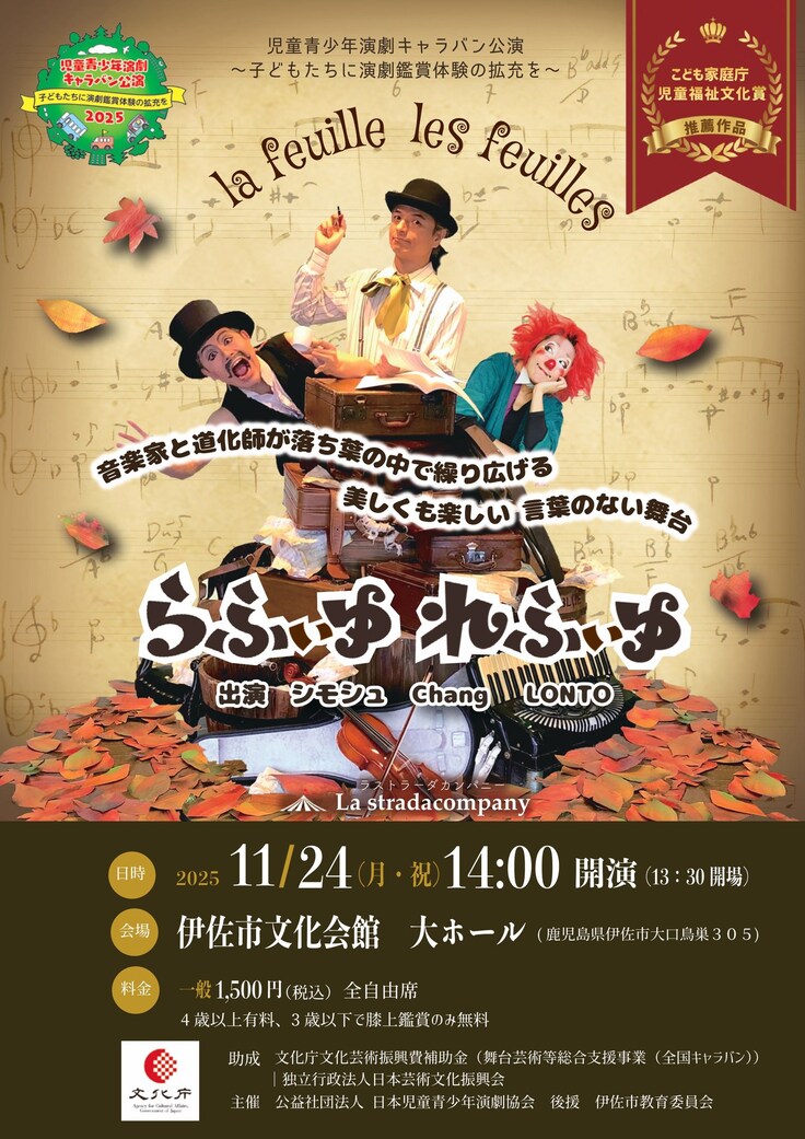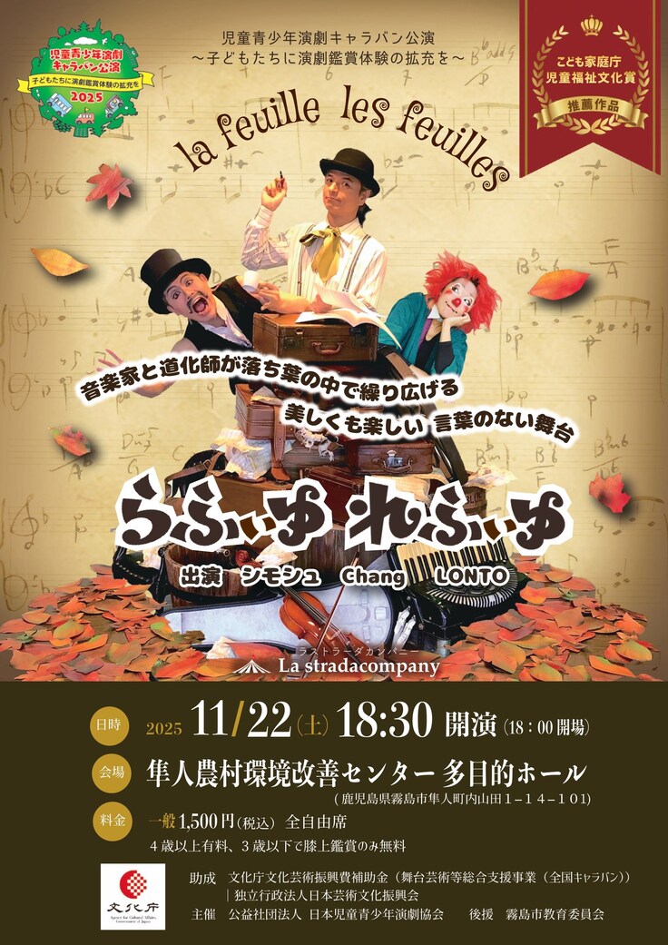 11月22日と24日にラストラーダカンパニーさんの舞台公演が鹿児島県内、霧島市(隼人)と伊佐市で開催されます。